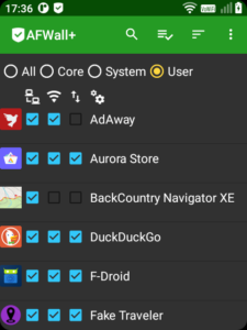Both these functions – antithetical to the users needs and wishes – rely on the internet. The baleful combination became possible with the rise of widespread mobile internet. In this post we’ll take control back over our network functions, so only the components we says can ever send or receive data on our phone. After all, we pay for it!