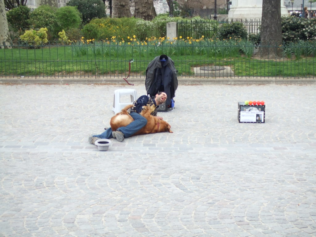 In front of Notre Dame there was, as always, thousands of tourists, and (as always) some guy putting on a show and busking. I’ve seen a lot of city buskers, and you usually know what to expect – the oddest I’d seen up to this point were a bunch of magicians who then turned out to be born-again Christians in Rab Town, Croatia (the audience weren’t really convinced).